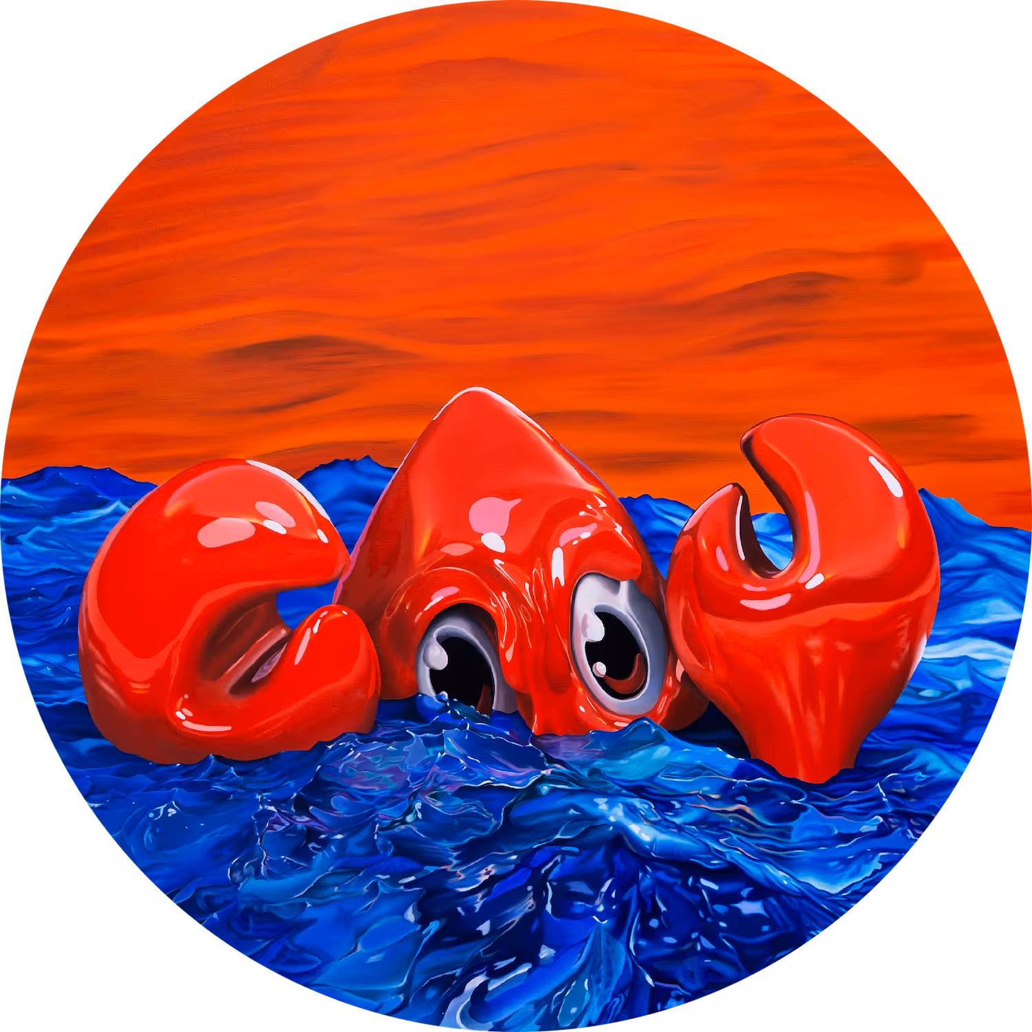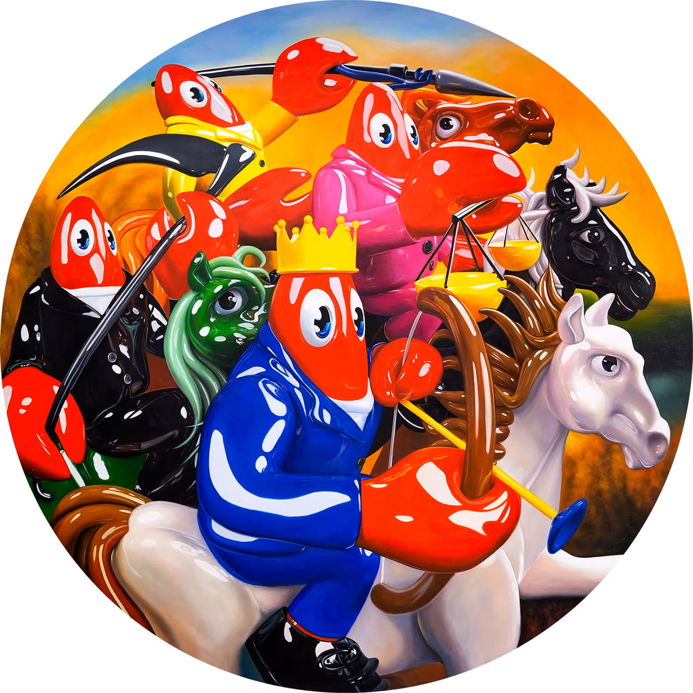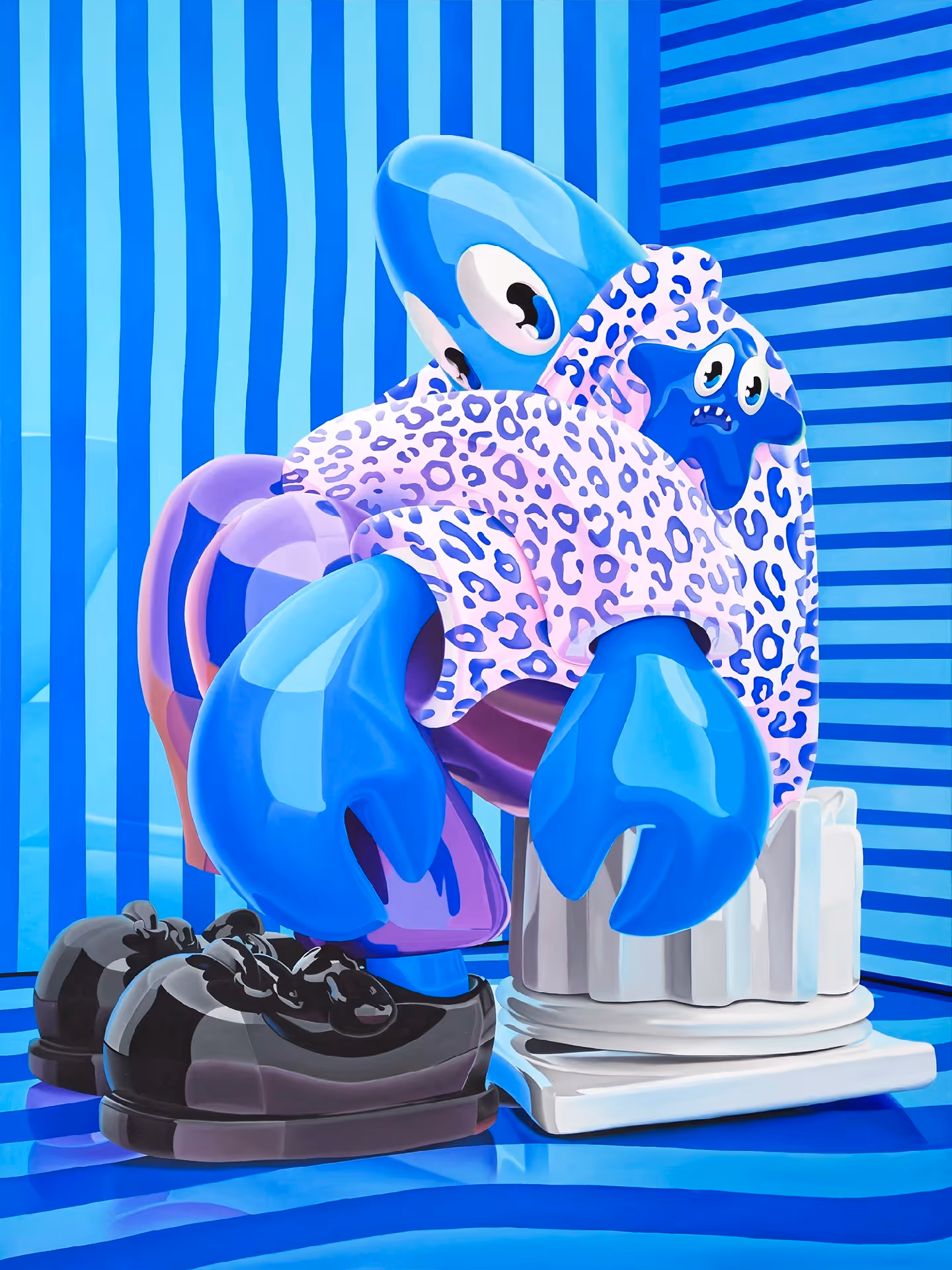 Following on from early Pop painters such as Richard Hamilton, Roy Lichtenstein and James Rosenquist. Colbert's paintings cross high art themes from old master paintings and contemporary art theory with everyday symbols of mass contemporary culture, all narrated through the eyes of Colbert's cartoon Lobster alter ego. He has been championed as a contemporary pop master by art world figures such as Charles Saatchi & Simon De Pury. Colbert's seminal NEW PAINTINGS & HUNT PAINTINGS show's at Saatchi Gallery in 2017 & 2018 showed his transition into epic large scale works on canvas, and has lead to a series of museum shows worldwide.