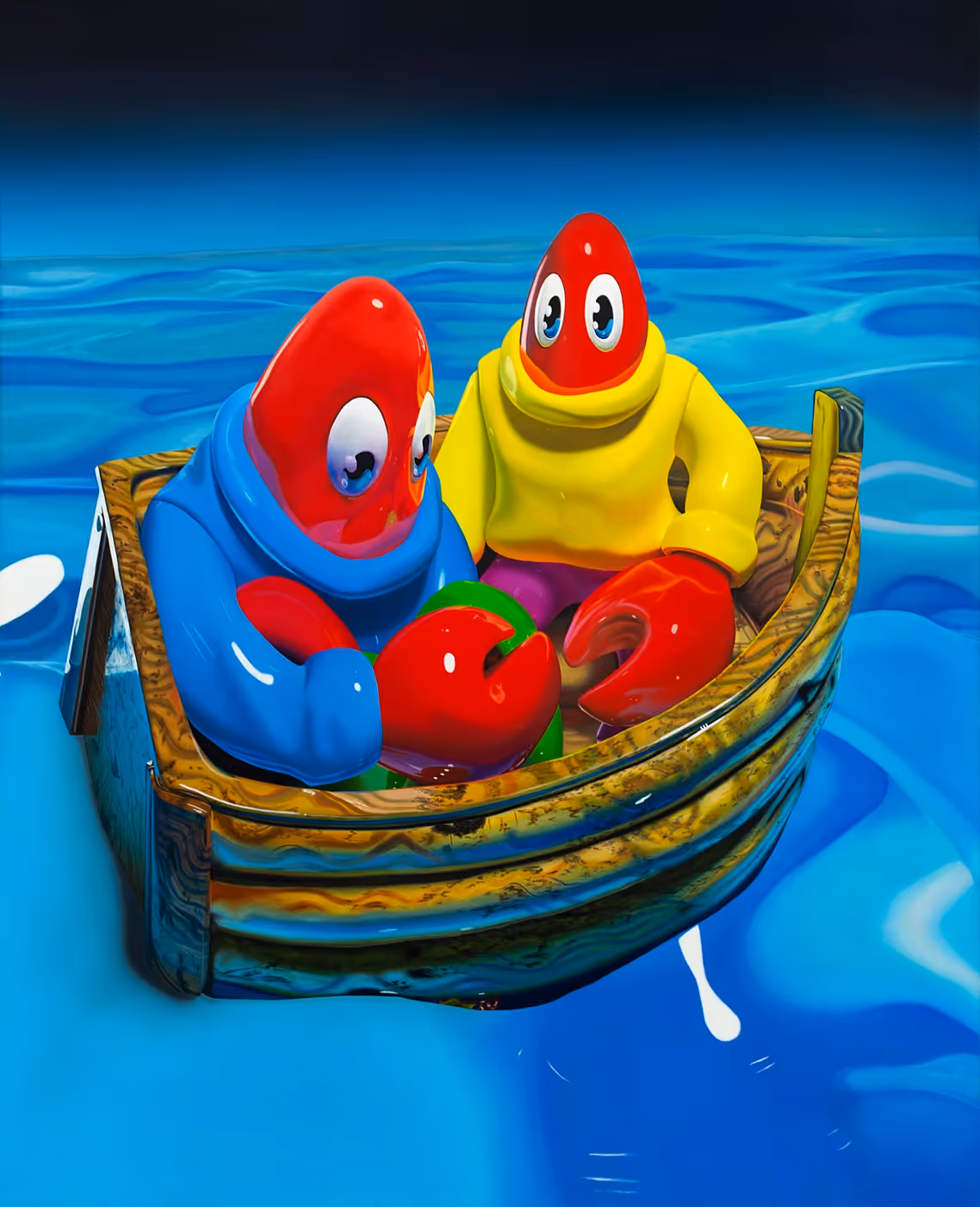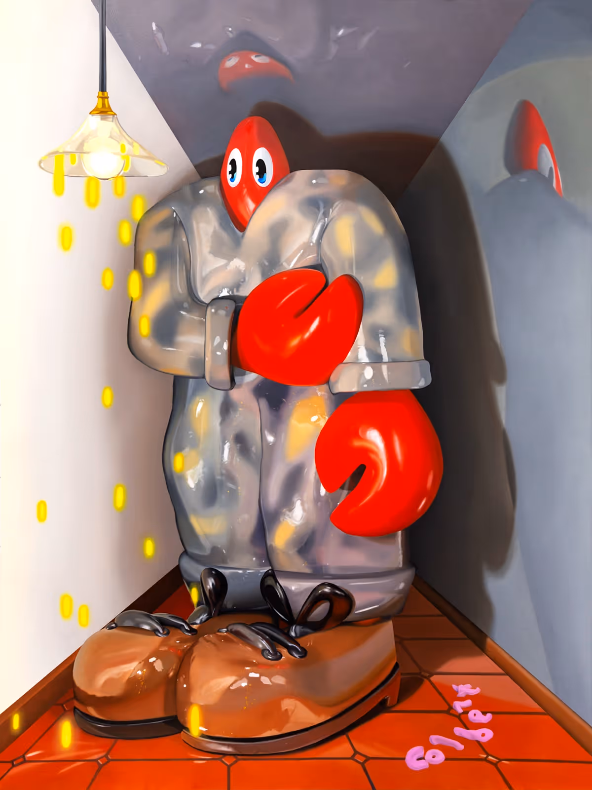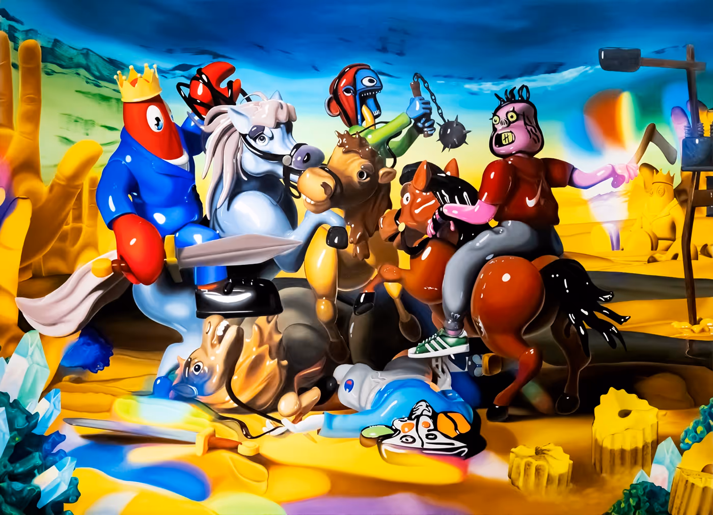 Following on from early Pop painters such as Richard Hamilton, Roy Lichtenstein and James Rosenquist. Colbert's paintings cross high art themes from old master paintings and contemporary art theory with everyday symbols of mass contemporary culture, all narrated through the eyes of Colbert's cartoon Lobster alter ego. He has been championed as a contemporary pop master by art world figures such as Charles Saatchi & Simon De Pury. Colbert's seminal NEW PAINTINGS & HUNT PAINTINGS show's at Saatchi Gallery in 2017 & 2018 showed his transition into epic large scale works on canvas, and has lead to a series of museum shows worldwide.