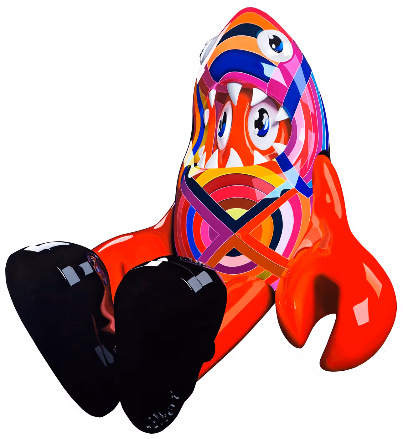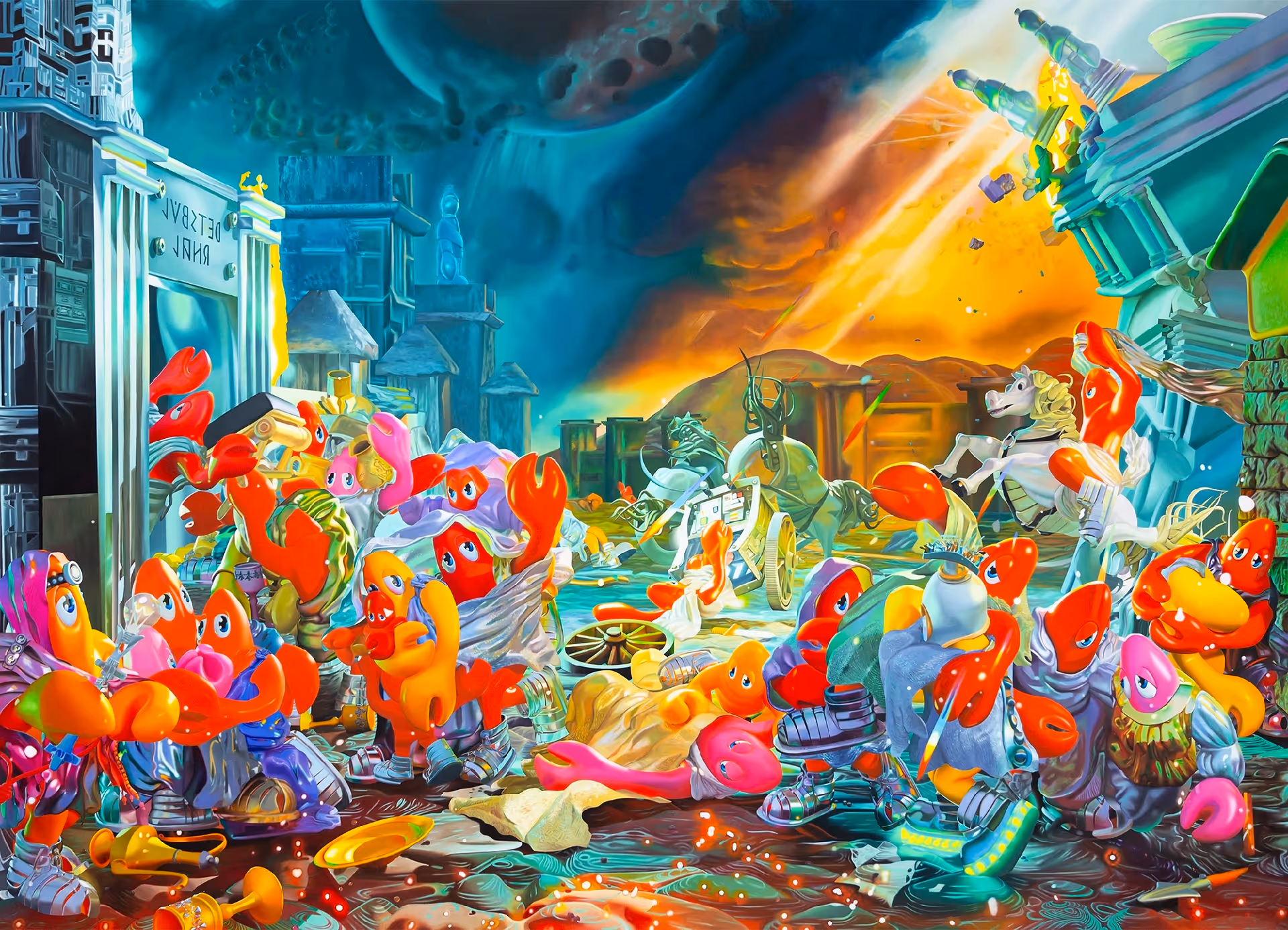 Born in Scotland and living and working in London. Colbert is often referred to as the “godson of Andy Warhol”. Colbert has created a global following for his cartoon lobster persona and his masterful hyper pop history paintings. His work powerfully explores the patterns of contemporary digital culture and its relationship to a deeper art historical dialogue.